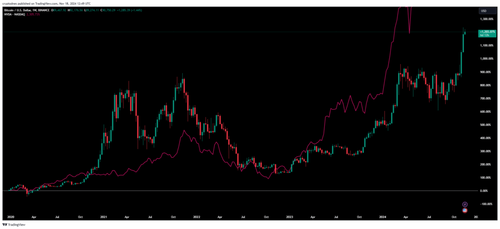 NVIDIA Corporation kap vlerën 5 trilionë $ ndërsa Bitcoin mbetet prapa aksioneve amerikane