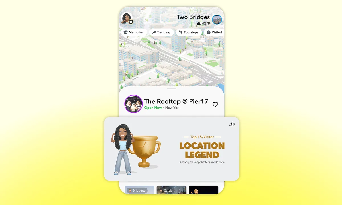 Snapchat ka filluar të prezantojë një funksion të ri në Snap Map të quajtur “Place Loyalty”, i cili tregon sa shpesh një përdorues viziton vende të caktuara gjatë një periudhe njëvjeçare. Funksioni i ri i lejon përdoruesit të marrin badge-e bazuar në nivelin e frekuencës së vizitave në një vend të caktuar. Ata që renditen në 1% më të lartë të vizitorëve marrin një badge të artë, ndërsa 10% dhe 25% më të lartë marrin respektivisht argjend dhe bronz. Këto vlerësime bazohen në të dhënat e përdorimit të Snap Map dhe shfaqen vetëm për përdoruesin, përveç rasteve kur ai zgjedh t’i ndajë me të tjerët.